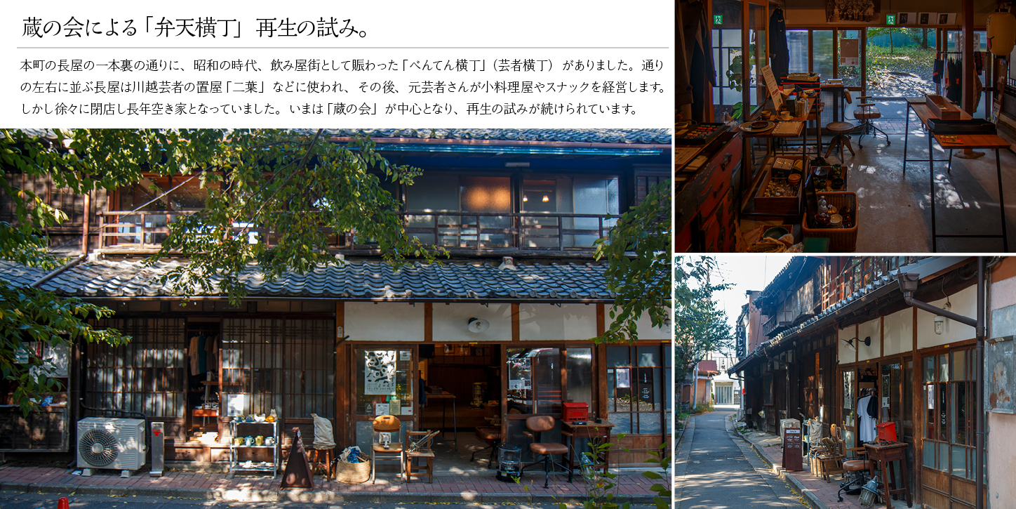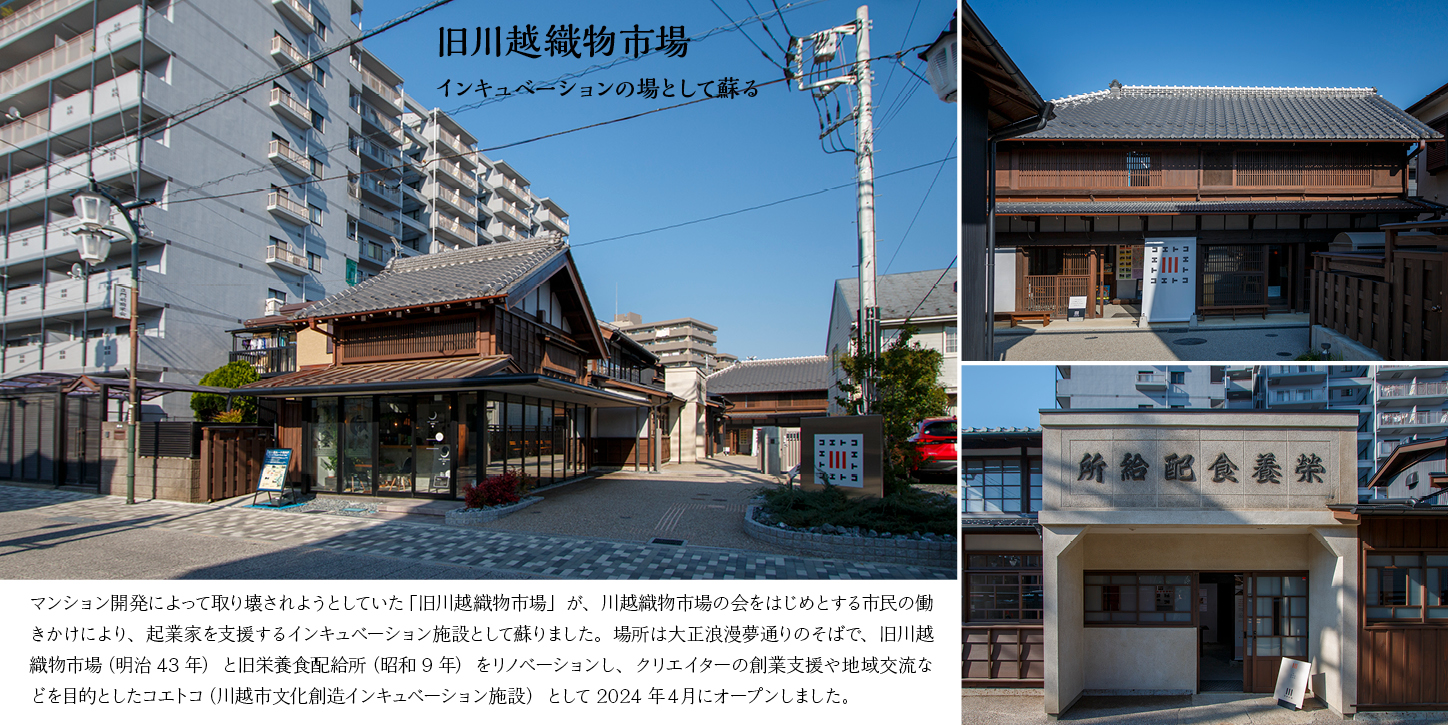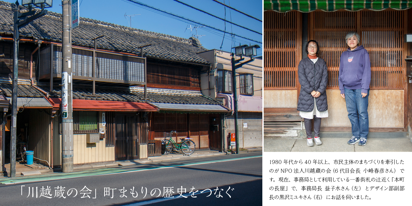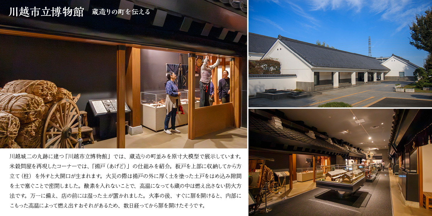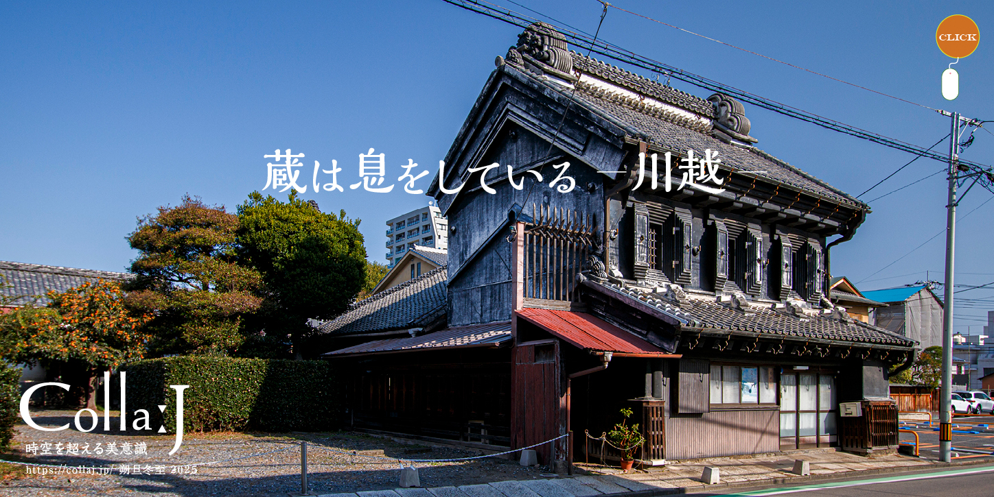蔵は息をしている -川越 . 時空を超える美意識 https://collaj.jp/朔旦冬至 2025 小江戸川越 川越のシンボルとなった「時の鐘」。江戸情緒を感じさせる蔵造りの町には、年間約 700万人が訪れます。小江戸と言われる「蔵造り」の町並み。なかでも一番街の原家(陶舗やまわ)、宮岡家(まちかん)、小谷野家(フカゼン)が並ぶ一角が、蔵造りの迫力を伝えます。各家屋を道路に対して4度ほど角度をつけて建てることで、屋根のボリューム感を際立たせています。 大火復興から生まれた蔵造り 現在の町並みは明治 26年(1893)「川越大火」の後に再建された「蔵造り」の建物です。川越は江戸時代から、縦縞の綿織物(川越唐桟)で栄えました。大火で町の中心部の大半を焼失しますが、豊かな商家は江戸日本橋の蔵造りを手本に、莫大な資金を注ぎ込んでわずか 3年余りで町を復興しました。その一方、関東大震災(大正 12年)によって東京の蔵造り商家は倒壊し、レンガ造や鉄筋コンクリート造に建て替えられて行きます。 明治16年頃に刊行された『東京商工博覧絵』(深満池源次郎 編)より。東京日本橋、京橋などの蔵造り商家を描いた銅版画集です。この時代の商家にとって店構えは信頼を得るための重要な要素でした。 影盛 富の象徴 影盛と箱棟 「影盛(かげもり)」や「箱棟(はこむね)」が屋根の迫力を引き立ます。影盛は 箱棟鬼瓦をより大きく見せるため漆喰を盛り上げた部分で、大きなものは1m近くありました。箱棟は屋根の棟の上に、箱状の飾り棟を載せたもので、雁振瓦や印籠瓦で装飾されています。 星の船に乗って流れ星をつかまえに行くよ Vol.78 原作:タカハシヨウイチ はら すみれ絵 : タカハシヨウイチ 大沢家明治の大火を生き延び、蔵造りの町のルーツとなった 大沢家は、もともと呉服太物(木綿)を扱う、西村半右衛門(近江屋)によって寛政 4年(1792)に建てられました。半右衛門は天保の飢饉で疲弊する町民に仕事を与えるため、壁厚 20cm以上もある立派な蔵造りを建てます。これが功を奏し明治 26年の大火では火元の近くであるにも関わらず焼け残り、そのことが大火後に蔵造りの商家が増えた理由ともいわれます。大火の際は水槽にむしろをつけて火の粉を防いだり、味噌蔵の味噌を土戸の隙間に塗りつけたと当時 17歳の女性は証言しています。建物のスタイルは、日本橋の釘屋佐藤四郎兵衛家に似たつくりです。昭和 46年(1971)には国の重要文化財に指定され、蔵造りの価値を地元に示すこととなりました。 『東京商工博覧絵』(深満池源次郎 編)より りそなコエドテラスに隣接する小林家は、呉服・太物商を営む2代小林佐平により明治大火の直後に建てられました。外観は切妻の平入りで出桁による二重軒蛇腹、黒漆喰壁に重厚な観音開扉と典型的な蔵造り商家の様式を残し、鬼瓦にカラスと呼ばれる独特の装飾を付けています。これは東京の商家にも見られますが、用途は不明です。1階は土間で、箱階段で上がった2階は使用人の部屋や倉 庫に使われたそうです。 山崎家 亀屋 天明3年(1783)に創業した山崎家の菓子舗「亀屋」は、一番街の入口にあたる仲町の交差点で現在も家業を続け 蔵造り商家のお手本ています。江戸時代には川越藩の御用商人をつとめ、代々嘉七を襲名していました。4代目は第八十五国立銀行の設立に尽力し、5代目は山崎家別邸を建て皇族や華族をもてなすなど、街の経済・文化面に貢献しています。 川越の蔵造り : 川越市指定文化財調査報告書から転載 亀屋は「店蔵」の北側に「袖蔵」と呼ばれる細長い蔵を設けました。袖蔵には、北からの火の手を防ぐ効果もあると言われます。店蔵の間口は4間で、1階店舗の開口部は、木の揚戸(あげど)になっています。その外側に格子戸があり、火災の際はさらに土戸(土を厚く塗った防火性の高い板戸)をはめ込み、隙間に味噌や土を塗り込めて蔵を密閉し、中に火が入ることを防ぎました。2重の軒蛇腹をもつ屋根は、箱棟や影盛、鬼瓦がのった出桁づくり。精度の高い2階の観音開き扉は、開けた扉が隣の扉と噛み合いひとつに見せています。深い庇を 4本の「はね木」で支え、瓦の上には「目塗台」を載せました。これは火災の際、2階の扉を閉め、土で塗り込める目塗のために登る台で、目塗は蔵を建てた大工の仕事です。2階には畳敷きの座敷になっていました。山崎家の敷地には店蔵、袖蔵、土蔵、屋敷、菓子工場などがぎっしりと並んでおり、その多くは川越大火後に5代目山崎嘉七により再建されました。大工は関谷家、左官は亀田家がつとめています。5代目は建築家 保岡勝也の作品で知られる山崎家別邸(前号で紹介)を建てた人です。その先代4代目嘉七は、日本画家橋本雅邦の支援者であり、また川越商工界のリーダーとして活躍しました。雅邦の父親は川越藩の御用絵師で、その縁から川越の有志が「画宝会」を結成。4代目嘉七が幹事をつとめ沢山の雅峰作品を蒐集しています。昭和 57年には、6代目山崎嘉七が古い建物の一部を利用し、雅峰のコレクショ
